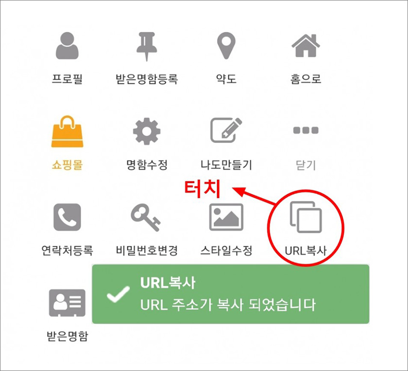 2. URL주소가 필요하시다면 ... 더보기를 누른 후 URL복사를 눌러 복사하여 붙여넣기 하여 사용하시면 됩니다.