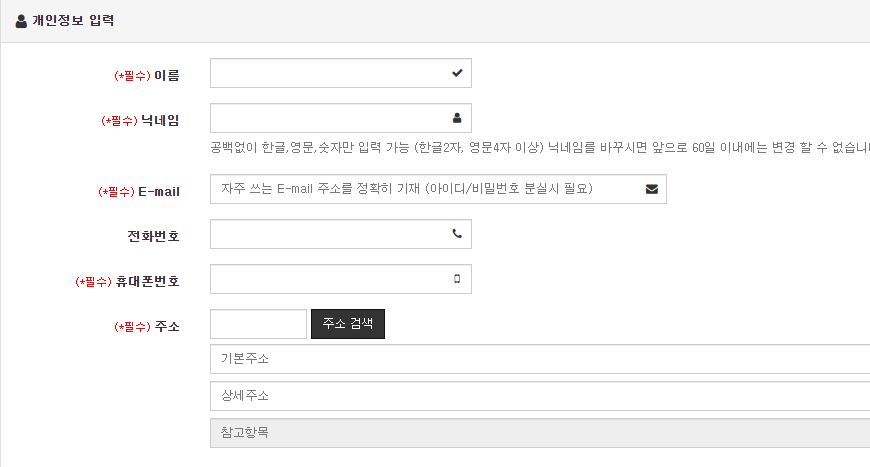 - ‹ 개인정보 입력 › 대부분 필수 입력 사항입니다. 해당 사항에 맞게 입력하여 주십시오.