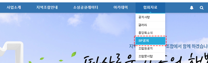 회원 정보의 미입력이나 부적절한 정보가 없을 시 최대 1주일 후 해당 직책으로 승인이 되시며 별도 연락은 드리지 않습니다. - 지경협 조합회원 중 SP로 가입 뒤 승인이 되시면 중앙회 웹사이트 [협회자료] 메뉴에 아래와 같은 회원 메뉴가 생성됩니다.